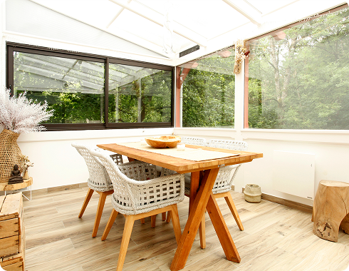 Salle lumineuse pour vos pratiques, grande cuisine conviviale, chambres de charme
